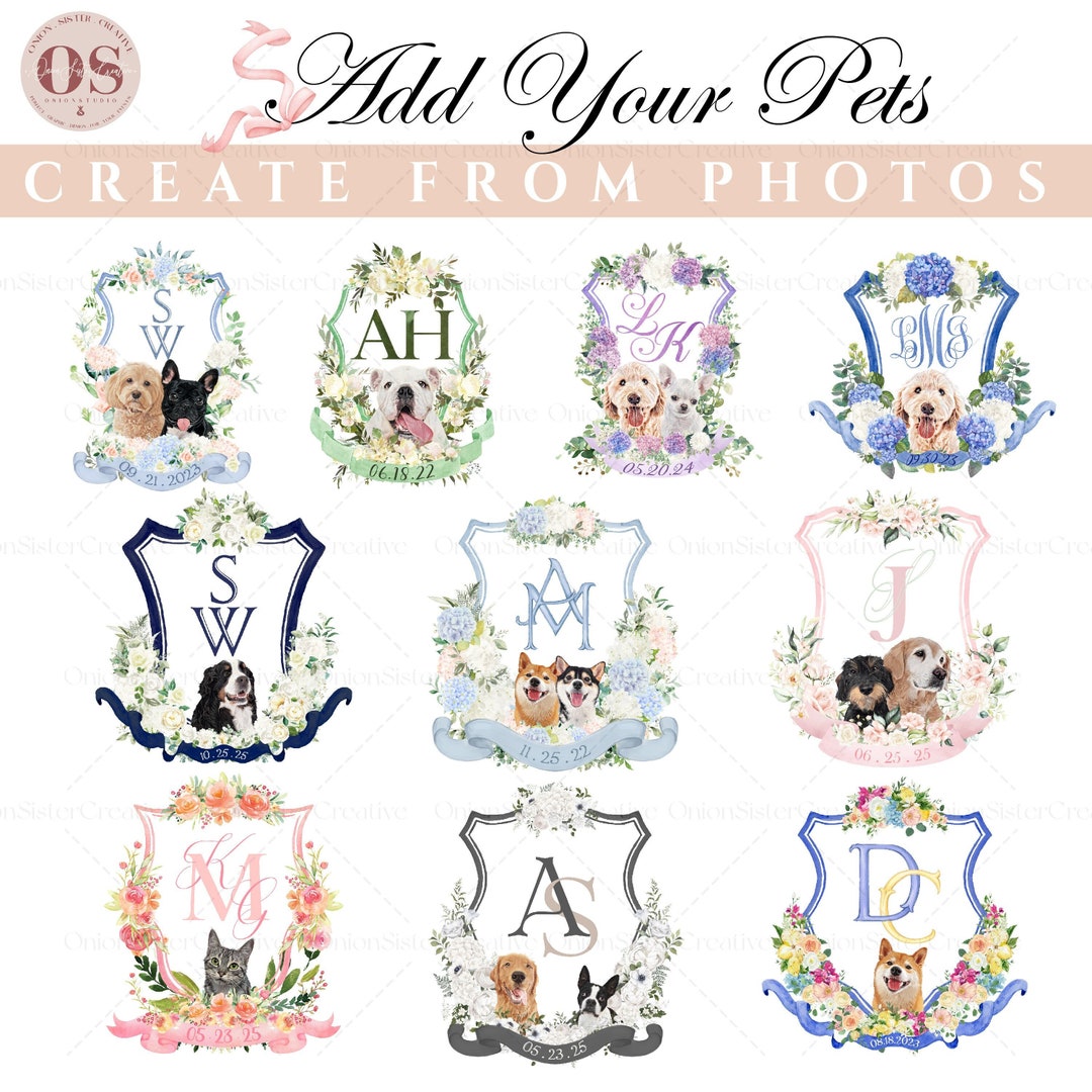 Custom Wedding Crest Monogram Logo With Pets Watercolor Etsy