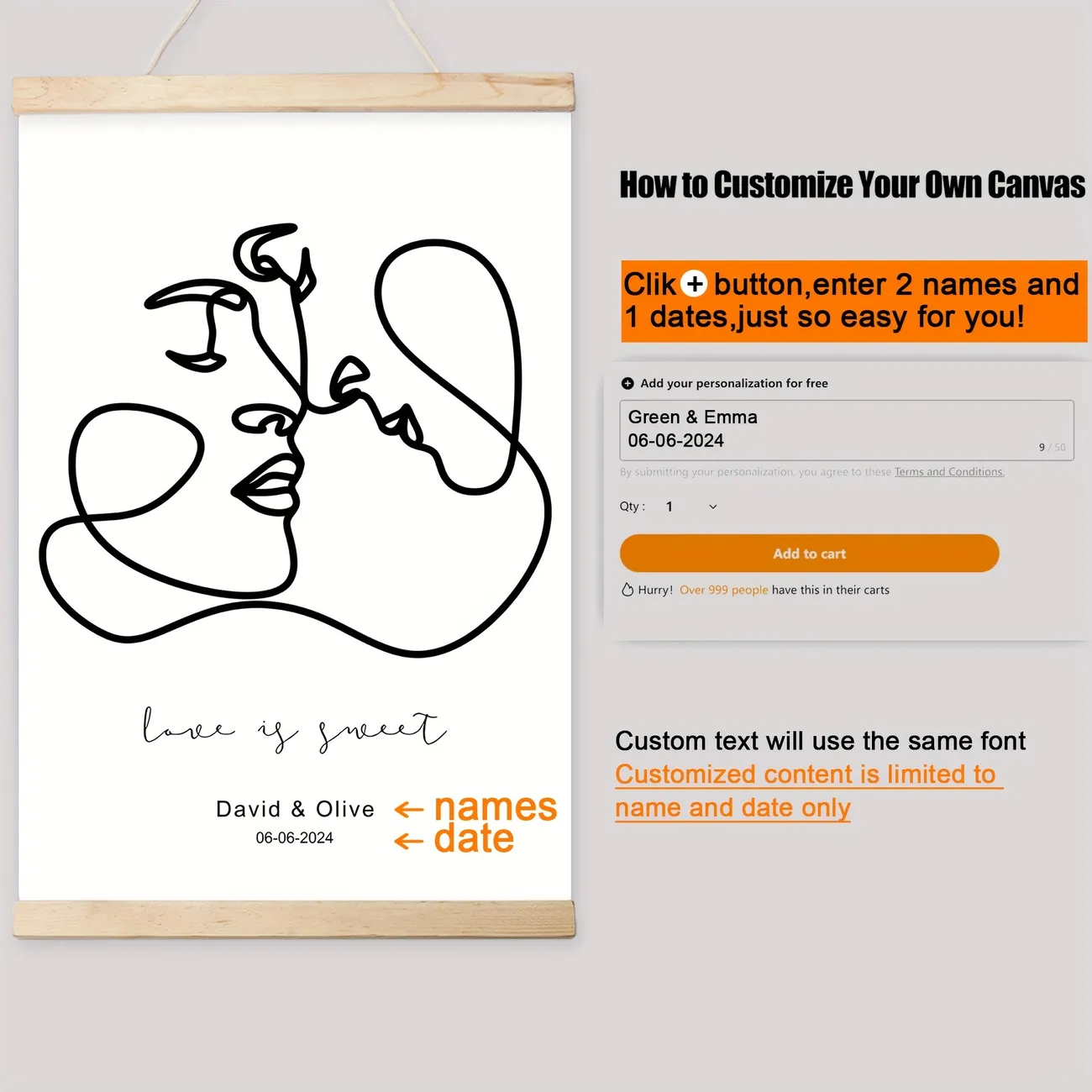 1pc Personlig Lovers Wall Art, Söt Bröllopsdag Poster, Minimalism