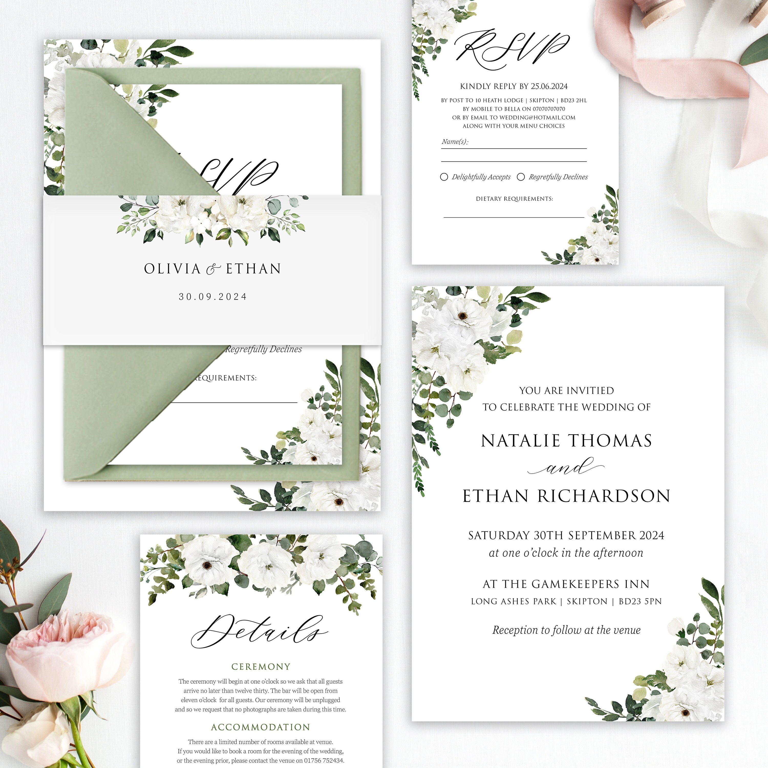 Kraft & White Floral Wedding Invitations Rustic Wedding Etsy Ireland