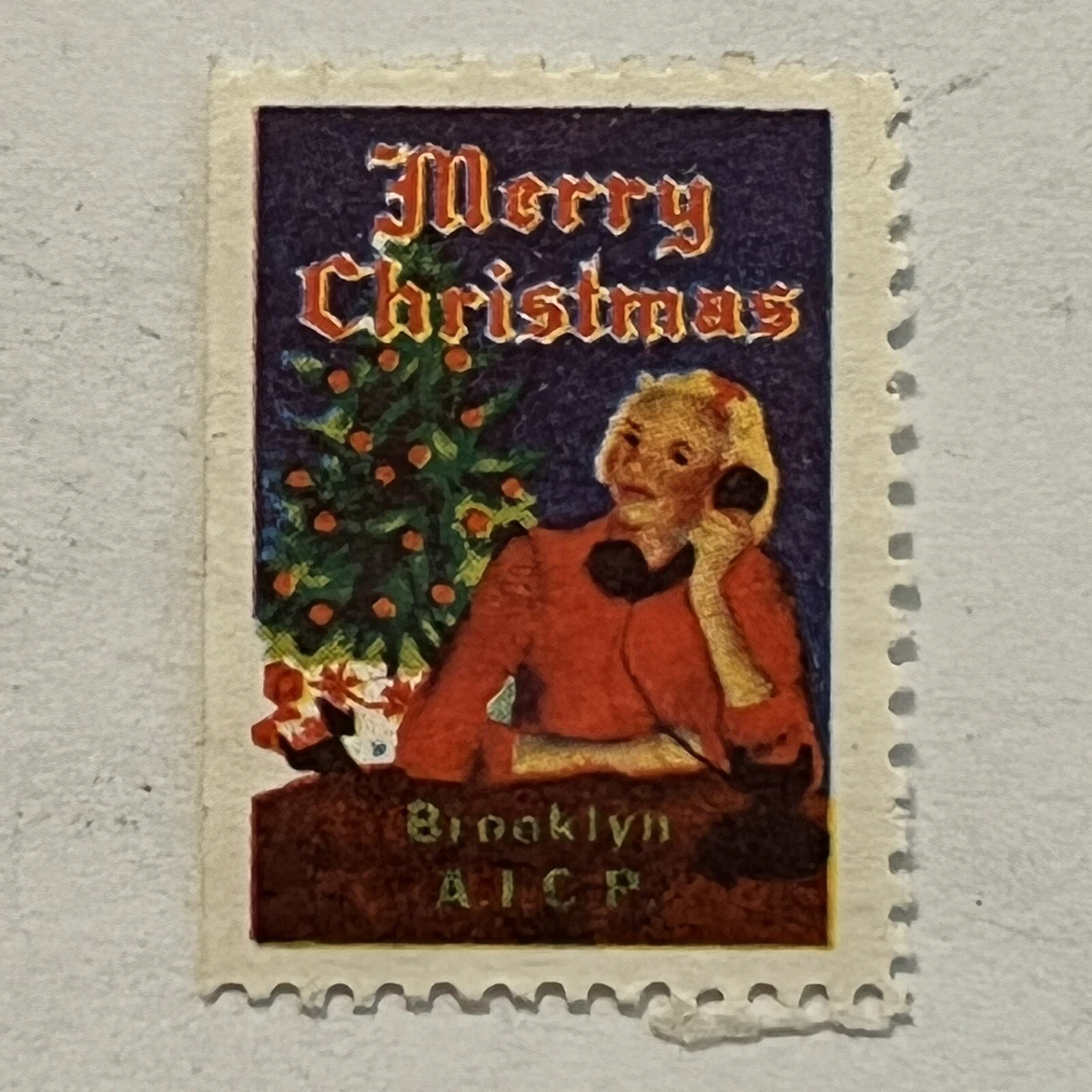 VINTAGE BROOKLYN AICP MERRY CHRISTMAS WOMAN ON PHONE CHRISTMAS