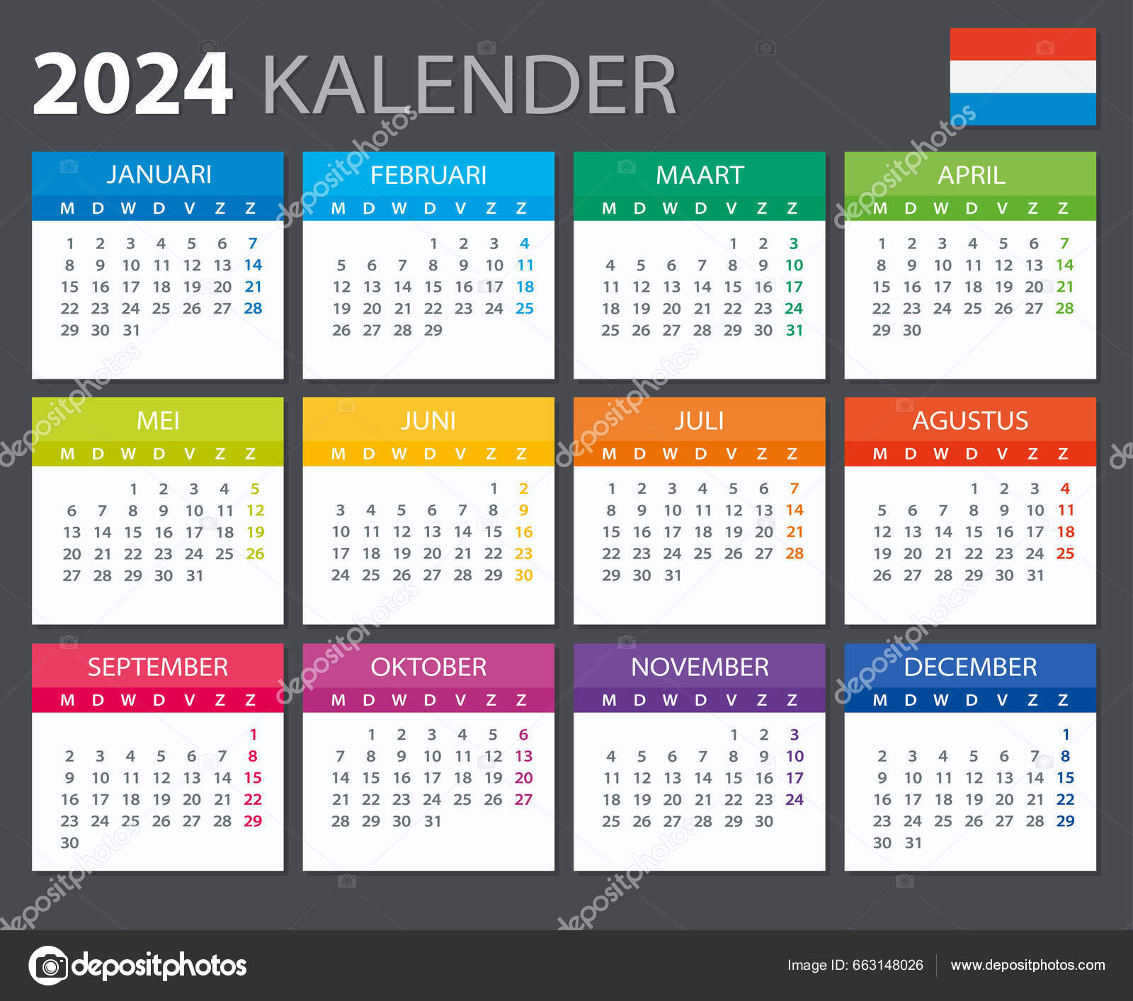 Vektor Mall Färg 2024 Kalender Holländsk Version vektor av