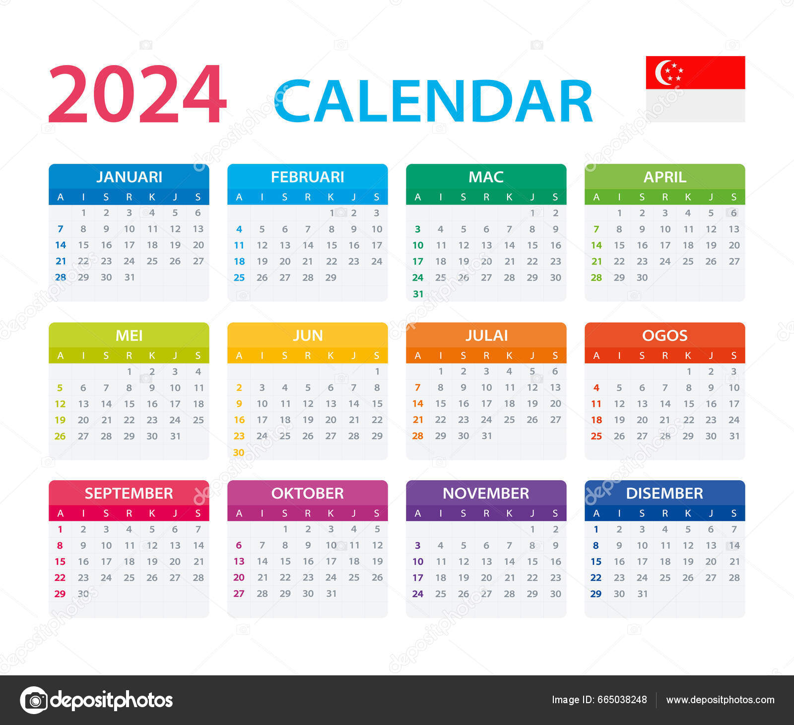 Vektor Mall Färg 2024 Kalender Singapore Version Lagerillustration