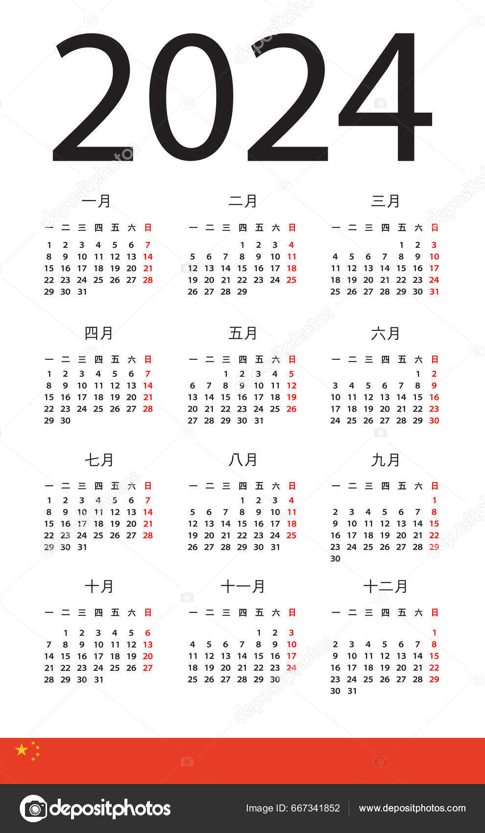 Vektor Mall Färg 2024 Kalender Kinesisk Version vektor av